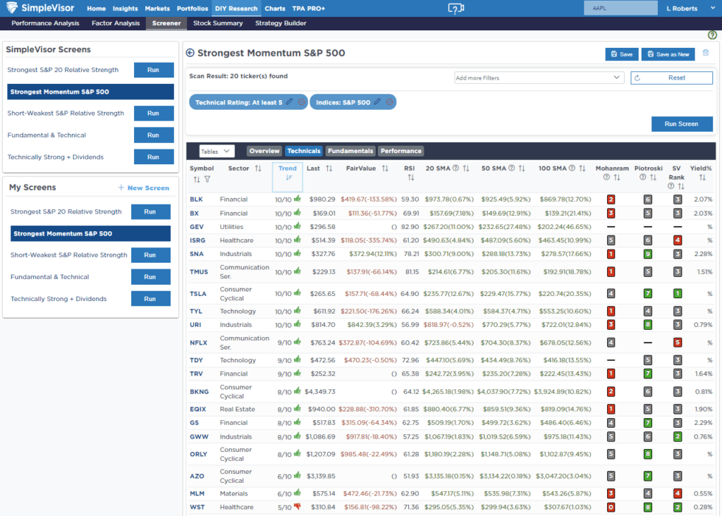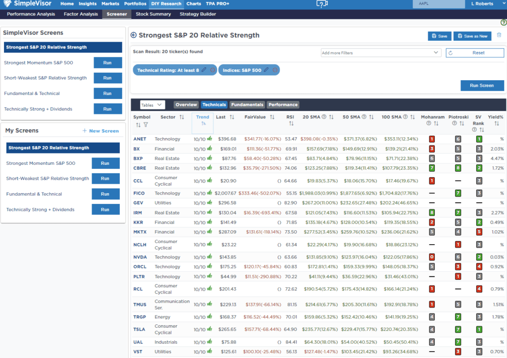 Weekly SimpleVisor Stock Screens