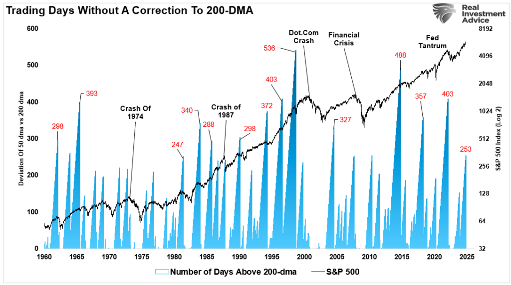 “Most crucially, the market has been up six weeks in a row, which historically is a very long stretch without a correction.”