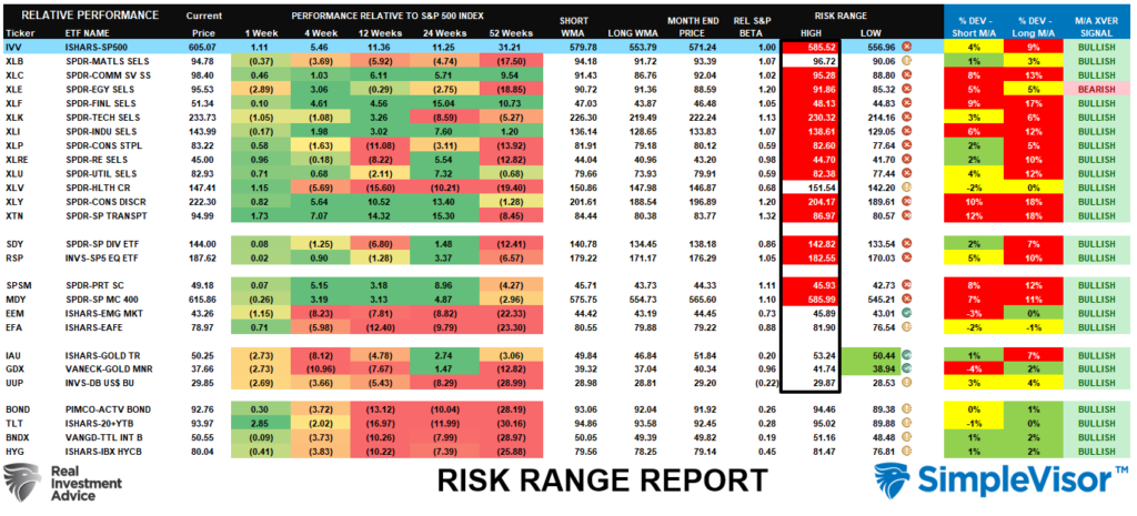 The risk range is a function of the month-end closing price and the “beta” of the sector or market. (Ranges reset on the 1st of each month)